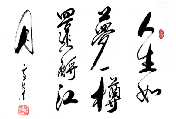 没有家学渊源,没有专人指导,更没有因袭的传承,郭方东之于书法艺术,一开始纯源于内心深处单纯的喜欢与热爱。“我一直都相信书法艺术很重要的部分是天赋、天性与悟性。后天的努力只能是锦上添花,以至于达到化境。”现年45岁的郭方东经历颇为坎坷,其庆幸的是艺术道路从没间断。从小学开始,他就开始对书法艺术产生浓厚兴趣。看到名家字画,就在捡来的废弃报纸上涂抹、临摹。“当时的条件很艰苦,书法字帖都很难买到。因此,我就是看到漂亮的字体就记录下来,回家临摹。因为没有纸张,就在手纸上、报纸上胡乱涂抹着。”从小在农村生活,求学之路坎坷而漫长,靠着一份执,凭着一个闯劲。之后去去青岛、济南、北京等地求学,拜访名师,工作这业余时间,他就正式开始琢磨中华传统艺术,博大精深的书法艺术。一直从事设计工作,其间也一直没有间断研习书法艺术。