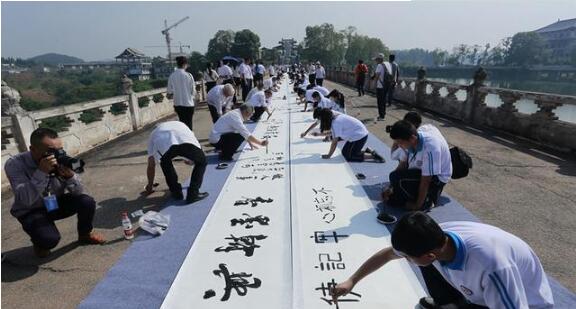 千余人一起书写百米书法长卷。