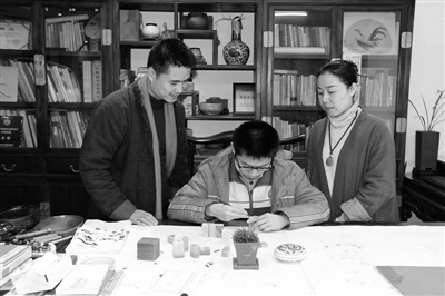 不仅外在美,王家的内在也很美。王珠今年43岁,出生在龙湾区永兴街道,毕业于浙江大学艺术系。其创办的紫晖斋书画学馆,是温州市唯一的“省青年书协教育实验基地”。他的妻子李洁芬是一名“白衣天使”,供职于龙湾区第一人民医院。夫妻俩除了兢兢业业完成本职工作外,还热衷于开展各类公益活动。“我们两夫妻会时不时地去学校、社区开展公益性质的书法讲座、书画课,参加各类义务送春联活动等。一般都是我写字,她磨墨;我在上面讲课,她在下面做后勤。”谈及参与的公益活动,王珠的话语中满是幸福与欣慰之情。