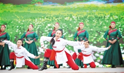 图为来自沈阳市舞蹈家协会、职工舞蹈家协会的舞者在表演《草原之恋》。
