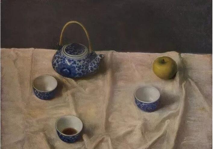 无论是取材自凉山彝族的乡土伤痕,还是自拍视角下的社会百态,庞茂琨细腻的古典技法更多承载的是审视的语言。九十年代初,庞茂琨完成了从学生到老师的身份上的置换,这一经历暗合了他在创作内容选择上的转变。柔和光线下室内的一角,亦或是女性优雅身姿变换的一瞬,卸下厚重的历史意义与文化承载,开始关注眼下现实的生活。