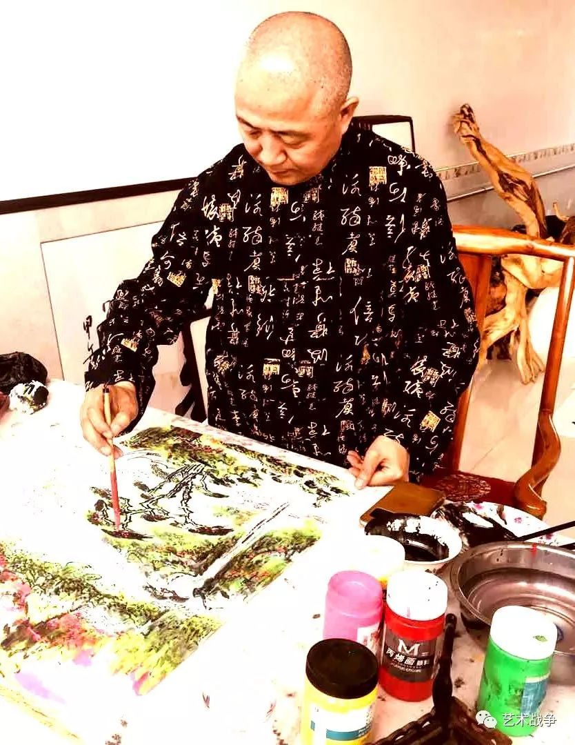以色彩为突破口革新中国画是近现代许多画家的夙愿,刘海粟、张大千力图引进西画的色彩以形成中国画的新面貌,李可染、田黎明希冀引进西画的光感以走出中国画的新路径,因为色彩本身就离不开光感。将光引入中国画创作其实始自“黑龚”,经“黑宾虹”,直至李可染的逆光画法和田黎明的“自然照射法”达到一个极致。无疑,张跃华是这条路径上的一位独特的探索者,他将舞台美术的“天光”引入彩墨创作之中,必然形成辉煌的光晕效果。张跃华在2015年以“墨彩神光”为主题在京华美术馆举办了由本人担任学术主持的大型绘画个展,更昭显出他革新中国画的雄心与胆识。在这次展览的研讨会上,陈绶祥、王宏建、陈池瑜、丁宁、郑工、翁剑青以及本人等知名理论家都对他的山水画予以了高度的评价