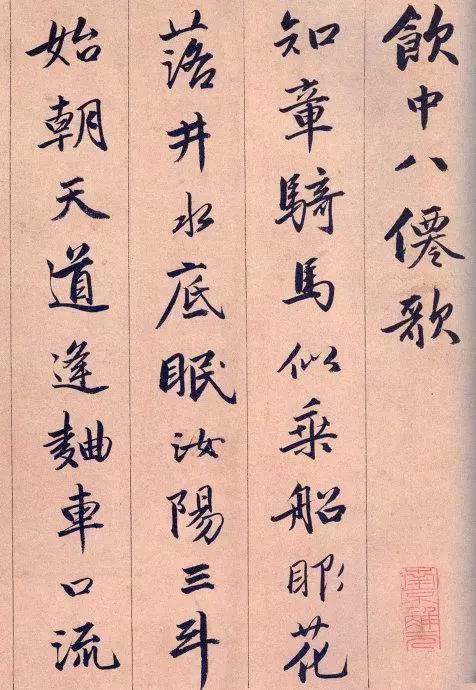 唐寅的书法不及绘画、诗文出名,但天分也极高。他的书风不离赵孟頫的影子,故王世贞在《弇州山人稿》中评议:“伯虎书入吴兴堂庙,差薄弱耳。”其实,唐寅的书法与绘画一样,均注意广涉诸家、融会贯通,面貌也很多样,只是享年不永,尚未达到“通会之际,人书俱老”之境界。依据文献记载和存世作品,他曾泛学赵孟頫、李邕、颜真卿、米芾各家,并在不同时期呈不同侧重,从而形成不断变化的阶段面貌。大体上说,其书风变化可分为四个时期。第一时期是30岁以前,他居住家乡苏州,与同年龄的文征明交善,甚受文氏影响,故两人书画均很接近,唐寅20余岁所绘《黄茅渚小景图卷》(上海博物馆藏),湖石、平坡、树丛均极似文氏细笔;书法亦俱从赵孟頫入手,均结体端丽,用笔秀润,唐寅的《高人深隐图》上款字,就极似文征明。第二时期是30岁至36岁,唐寅科场被黜,妻子离异,无奈藉诗文、书画谋生,其时书法上追唐人,力求规范,尤宗尚颜真卿的楷书,用笔凝重,圆硕多肉,结体偏于长方,雄强茂密,点画横细竖粗,并吸纳隶法,横笔收尾似“蚕头”,捺笔收笔中途之顿近“燕尾”,极富力度,如唐寅作于弘治乙丑(1505年)36岁时的《落花诗册》。第三时期是37岁至45岁,唐寅正值壮年,居住在世外桃源的桃花庵,专心从事自由自在的诗文书画创作,生活自得,创作也达到顶峰。其时书法重又归返赵孟頫,并上追唐代李邕,遂形成了自身的成熟风貌,以结体俊美婉媚、用笔娟秀流转的赵体为根基,并融入了李邕斜长的字姿、有力的笔法和生动的布势,于秀润中见遒劲,端美中见灵动。这类风格作品甚多,如作于正德元年(1506年)37岁的《七言律诗轴》(台北故宫博物院藏)、30余岁的《山路松声图轴》(台北故宫博物院藏)上款题和《行书三绝卷》(丁念先藏)等作品,均呈赵孟頫与李邕相融合的面貌。第四时期是46岁至54岁去世,已属唐寅晚年,自45岁从江西宁王处装疯逃回,他进一步看透了世事,思想更加消沉,行为也更颓放,书法亦变为率意,并吸取了米芾求意取势的书风,用笔迅捷而劲健,沉着而痛快,八面出锋,率真自如,追求力量、速度和韵味;同时又融诸家笔法于一体,使结体、用笔均富于变化,并达到了挥洒自如、神机流走的境地。代表作品有50岁以后作的《西洲话旧图轴》(台北故宫博物院藏)上款题、《看泉听风图轴》(南京博物院藏)上款题等。
