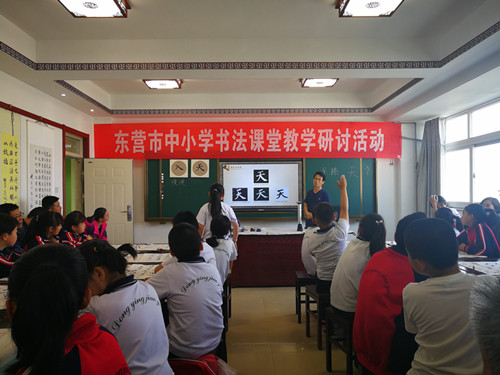 本次活动安排了小学、初中、高中三个学段共三位书法教师进行了教学活动的成功展示。东营区一中的周涛老师、市晨阳学校刘金璐老师在晨阳学校分别执教了小学书法课《捺》及初中书法课《撇》,市二中的杨生文老师执教了高中书法课《集字创作》。老师们以精巧的教学设计、新颖的教学方法、生动的教学课件、丰富的互动体验活动和开放高效的课堂模式,给师生留下了深刻印象,赢得一致好评。四位专家对三节课逐一作了细致的点评。市教科院教研员结合《中小学书法教育指导刚要》的贯彻落实,对中小学书法课目标、内容、实施要领、评价建议与大家进行了交流。