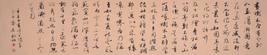 吴劲松的书法空灵清秀、俊逸舒爽,具个性鲜明的姿态,灵秀外表之下的绞转线条增加了字形的厚度和表现的深度,转递出作者之于书法创作探索的艰深努力,这种努力的结果是,作者既保留了自己的审美价值取向,又兼顾了多样性表现的需要,对于这种审美选择的不断完善和更高意义上的诠释。