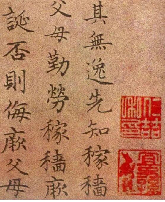 赵孟頫小楷代表作《无逸》,作于1301年前后,与杨毅桓篆书《无逸》同装在一起,《石渠宝笈》初编卷十三著录,曰“元人三体书无逸篇一卷”。杨书为大德己亥(三年),萧书为大德辛丑(五年)。赵书大约也在这个期间,那么就是四十六至四十八岁时的中年之作了。