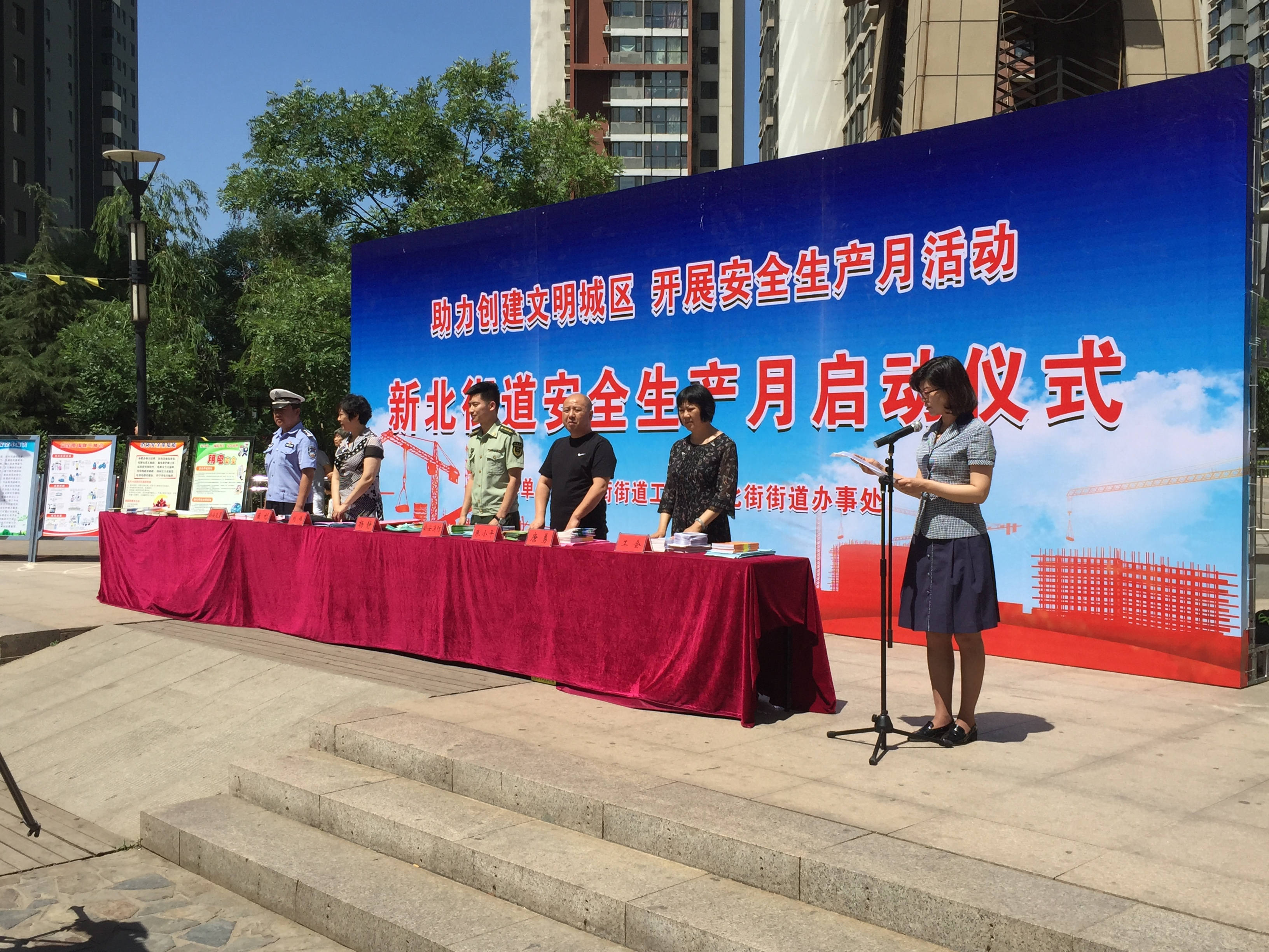为深入宣传贯彻党的十九大精神,认真落实习近平新时代中国特色社会主义思想和党中央、国务院关于加强安全生产工作的决策部署,助力文明城区创建,在全社会弘扬“生命至上、安全发展”的思想,增强企业生产经营单位和广大居民群众的安全意识、文明意识、应急意识,提高公众的安全文明素质和防灾减灾能力,有效预防和遏制公共安全事故,创造和谐宜居、平安稳定的美丽新北。根据安委会的工作部署要求,6月8日上午,新北街道工委、办事处在贻成尚北中心广场组织“助力文明城区创建、开展安全生产月”暨安全生产咨询服务活动启动仪式。新北街道工委书记杨静出席活动并致词。新北街道处级领导、各科室负责同志、各社区居委会主任、安监主任、安监协管员、居民群众代表、小区物业公司负责同志、街道安全监管区重点企业经营单位安全负责同志、约300余人参加了活动仪式。