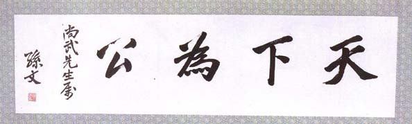 中山先生是一位革命的实践者,不可能临池学书般地只专心于书法。他的书法不是练出来的,而纯粹是从心灵里流露出来,是以其特殊的政治地位与伟大理想自成一体,“字如其人”在孙中山先生身上得到完美的体现。
