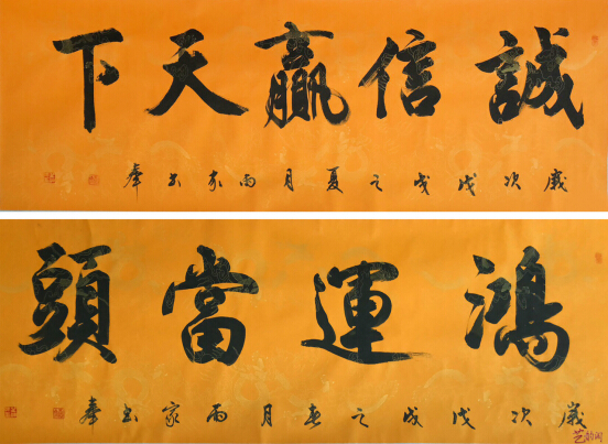 受祖父影响,自幼喜爱书法。楷书初学颜柳,以颜书勤礼碑下工最勤,后临习几年颜书東方朔画赞碑;行书初临颜书三稿,后改临米芾苕溪诗卷,蜀素帖,也间临一些王铎的行书;草书临孙过庭书谱;隶书临张迁碑;篆书临散氏盘。几十年来一直笔耕不辍,一九九七年工商局退休后移居西安专业书法临习与创作,不觉又二十多年。