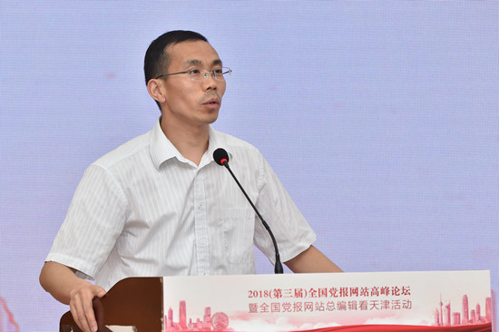 2018(第三届)全国党报网站高峰论坛今天正式召开,论坛主题为“媒体融合:宣传新时代 拥抱新时代”。中宣部、中央网信办、人民日报社、天津市委市政府相关领导,天津市委网信办主要负责同志,中央及地方党报网站总裁、总编辑,专家学者,互联网新闻信息传播平台、企业、媒体代表等200余人参加论坛。社会科学文献出版社副总编辑蔡继辉在论坛上致辞,以下为全文内容:
