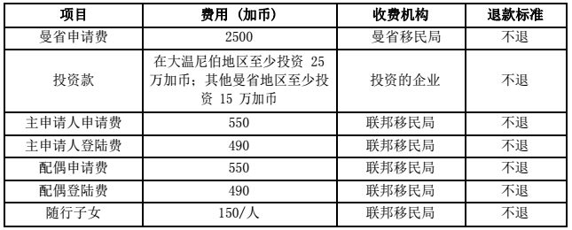 6、投资要求:在大温尼伯地区至少投资 25 万加币;其他曼省地区至少投资 15 万加币;需要创造至少 1 个就业