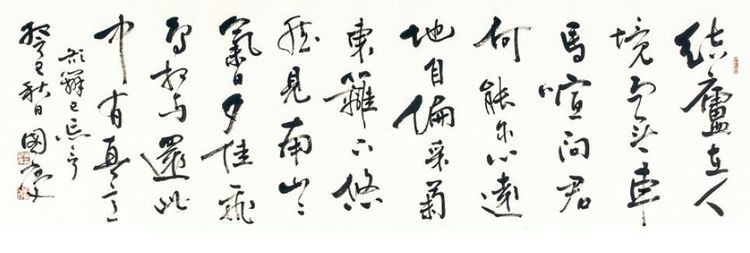 国庆昔年负笈游津,蒙错爱,入我门下,切磋之间已见功力。其后数度春秋,受津门文化熏陶,技艺日臻,翰采斐然,自成章法。今余老矣,尽管素不敢言桃李公门之风雅事,然在诸弟子中老朽但以识国庆为慰、为幸。国庆为人心地纯正,质朴木讷;为艺神游三代,心系晋唐;为学谦虚好问,时时自感不足。人生原本有很多路选择,一旦立志弄墨,即选定一条艰辛之路,非投入毕生精力不能窥书法之奥区。宗白华先生曾叹百艺之中书法最难。熊秉明先生也曾说过,书法是哲学中的哲学。先哲之言,有感而发,道出了对书法艺术的敬畏之心。国庆深谙此理,在逆境中潜心磨炼,立志在书法艺术博大精深的海洋中破浪前行,在创作上百尺竿头,层楼极目。语云:“十步之内,必有芳草。”纵观后俊之心迹,其言不谬矣。