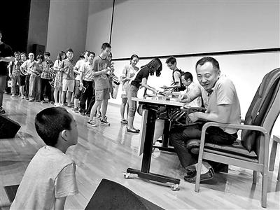 周日上午,中国科技馆东门外很早就排起了长队,明显以年轻人为主体的人流多半涌进了一层报告厅――理论物理学家、中山大学天文与空间科学研究院院长李淼将在此进行科普演讲,而讲座的重量级嘉宾,则是科幻迷心中的“大神”、《三体》作者刘慈欣。“这个报告厅能坐四百多人,消息发出的第一天,网上报名的人数很快就超过七百多,一下就报满了。”知名科幻推广人、同时也是讲座嘉宾之一的《科幻世界》总编辑姚海军告诉青阅读记者。