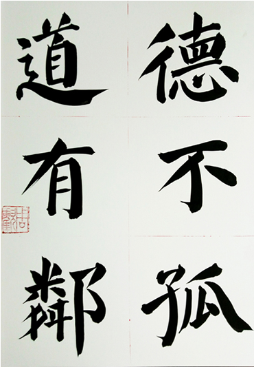 周欢学书自魏碑而入,旁涉东坡行书、汉隶诸品、唐楷、清篆,现主攻汗简书法,字体俊秀、细腻而清新,看他的正楷,亦点画精到,点画精到,干净利落,饱满圆润,飘逸雄壮,其他书体而正楷能写到这个高度并不多见,精密易到,而闲逸却难。书法追求到了较高层次,往往心法重于笔法,周欢的书写状态可以给我们某些启示。