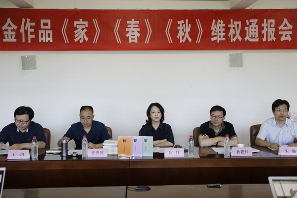 6月28日上午10时,由人民文学出版社举办的“巴金作品《家》《春》《秋》维权通报会”在北京召开。人民文学出版社副总编辑应红,中国文字著作权协会总干事张洪波,人民文学出版社法律顾问、北京天驰君泰律师事务所高级合伙人孙建红参加活动并发言。