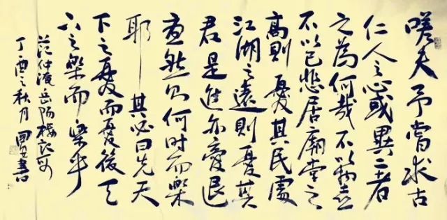 刘熙载在《艺论》中言:“书,如也,如其学,如其志,总之曰如其人”,“书如其人”道尽了书法创作的个性特征,这种差别不仅体现在不同书法家创作的实践中而且体现在同一书法家的不同创作实践,昔张旭“有动于心,必于草书焉发之”,王国安老师俯首默默,瀚海书艺几十年来,始终坚守二王正脉,兼参颜鲁公,宋四大家,承古之经典而又常出新意,寄豪情于妙理,在其笔下,行书独树一帜,仔细欣赏,上有空天,下有留地,左右虚实,上下得所,远近相宜,不难看出其创作不囿于一家之法的局限而是融百家之长,格调刚柔相济,兼有沉毅清俊及豪放雄浑之象,彰显着独具一格之美和韵味。