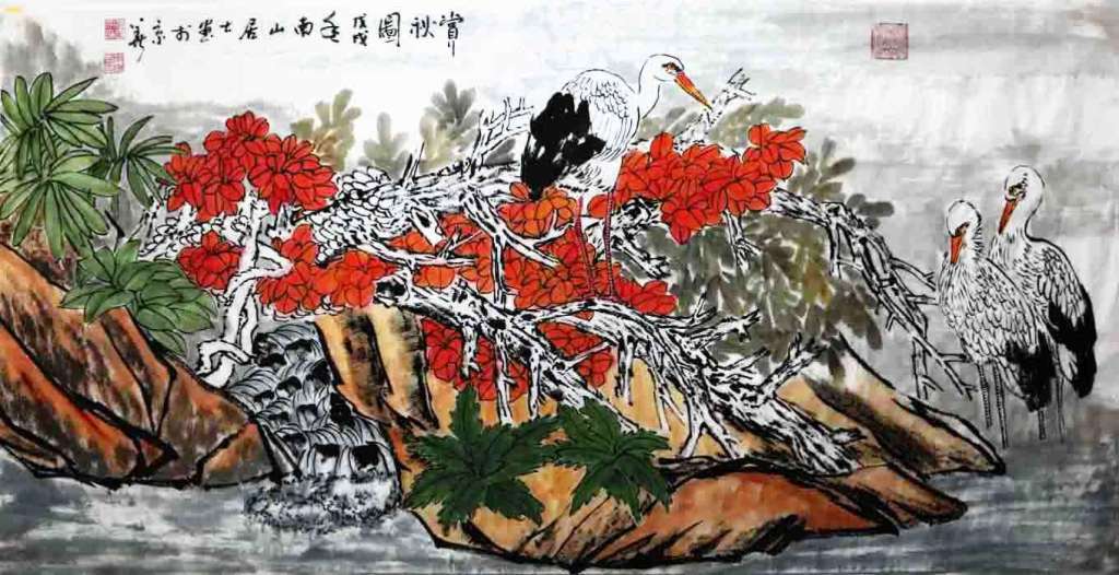 单耀宗凭借引人注目的重彩工笔才华,力挽颓局,在花鸟画界开枝散叶,一路开拓,独成高峰,创造了前无古人,惊艳来者的花鸟新宗一派,他画前人没有画过的体裁,必定成新奇涌生,他画前人画过的体裁,也必定会依变再成新奇。虎、鹤、鹿 、孔雀、锦鸡、塘荷皆依旧功为底色,新风为时尚,古往成今来,工笔重彩卓成,收获了令人敬仰的高端水准。他依造型与彩墨的独特风采,占据画界的时代江山,一举破旧习,再铸新奇功,引领花鸟画从小众重归大众,让工笔重彩再现艺术的新光华,可谓是依绘画才华主领文化振兴大业的典范人物。