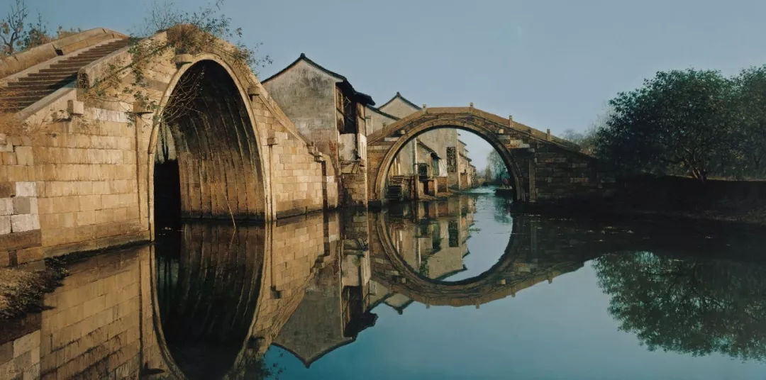 面对王贻华的艺术作品,你立刻会发现,他对绘画技巧有着极为出色的了解。在他的画笔下,九百年历史的古老城镇周庄—其百分之六十的屋舍保存着他们自明代和清代以来原始的特色—的运河美景栩栩如生的跃入观赏者的眼帘。这些绘画都是通过一种高度现实主义的手法绘制,精致的画面吸引着观赏者沉浸于那古老的景致之中。王贻华绘画最引人注目的并不是他所掌握的表现逼真精致的技巧,而是这些技巧已经变得像是他第二个本能:你会清楚地看到这位艺术大师已经不会再为这些技巧所累。他更关心的,似乎是向观众们转达一种强力的,沁润着个人寓意和诗歌气息的场所感。”所有的元素为灵魂转达出一种无限的连贯性,一个精心架构的历史和文化,以及一种穿越自然的强大生命力。”王贻华说。正是这些包含在个人绘画风格中的奥妙理念使得王贻华的绘画作品变得如此令人沉醉。