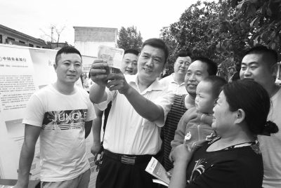 为提高农民防范假币意识、普及鉴别假币的方法,农行新蔡县支行组织工作人员走进乡村宣传反假币知识,受到了广大农民的欢迎。图为日前该行工作人员在河邬村进行宣传。