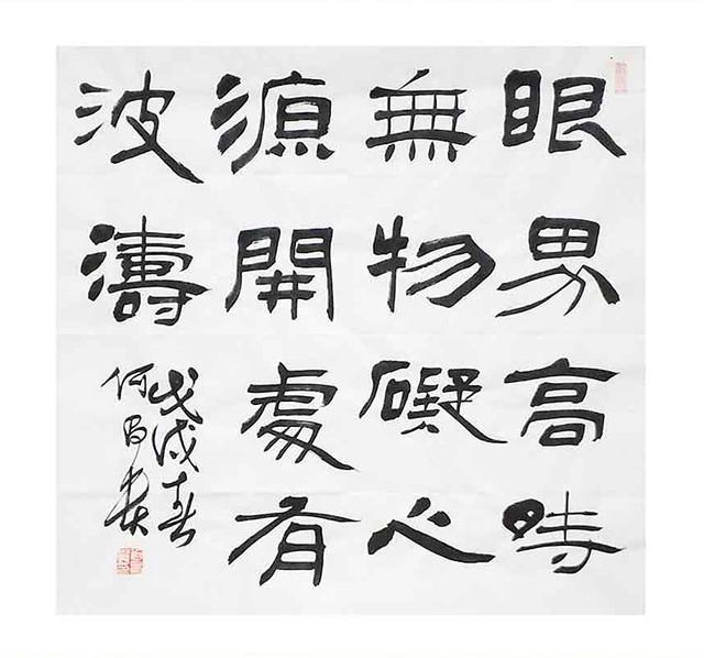 很多同行这样评价何昌贵的隶书作品:“隶渗简帛开生面,书到天成格自高”,保持了隶意,但有新意,也有文人的雅量。