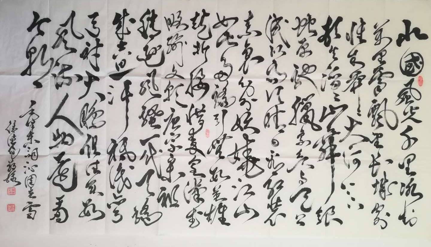徐德伦先生主修行、草书,其泼墨厚重,圆润饱满;笔法善变,收放自如;形似盘蛇,粗细相宜。欣赏他的作品,就像玄妙的智慧画卷。近看每个字犹如弯曲相接的小河,远看恰是和谐的音符,给人以美感,给人以心灵震撼,无不令人称奇赞叹。目前,其作品售价3000元~10000元不等。