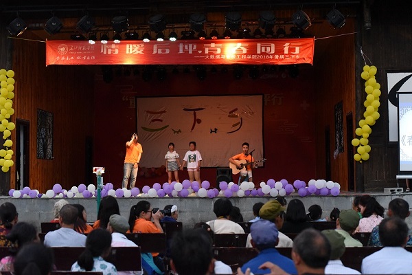 该院2018年暑期“三下乡”社会实践活动文艺汇演的顺利落幕,彰显了我校学子的精神风貌,展现了志愿者们的服务精神,拉近了该院志愿者服务团与后坪乡居民的距离。引领和帮助广大青年学生在社会实践中受教育、长才干、作贡献,以青春建功的实际行动,为全面建成小康社会贡献青春力量。
