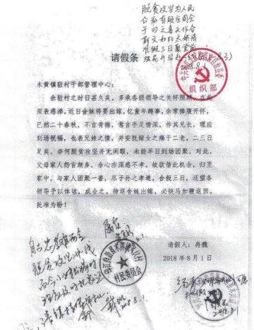 被网友们称之为“最文艺”的请假条上,不止是冉魏一人的书写。在它上面,村里的第一书记批复到:“自古忠孝难两全,脱贫攻坚冲一线,而今小妹出嫁时,理应及时把家还。”当地县委组织部批复到:“准假三日聚堂前,烛花开后赴一线。”字句之间,押韵的旋律朗朗上口,表达的意思一目了然,更重要的是,这张文艺范十足的请假条引发了人们的共鸣。它既显文采更见干劲,映照出当前脱贫攻坚第一线只争朝夕的境况,以及青年干部时不我待的精神。