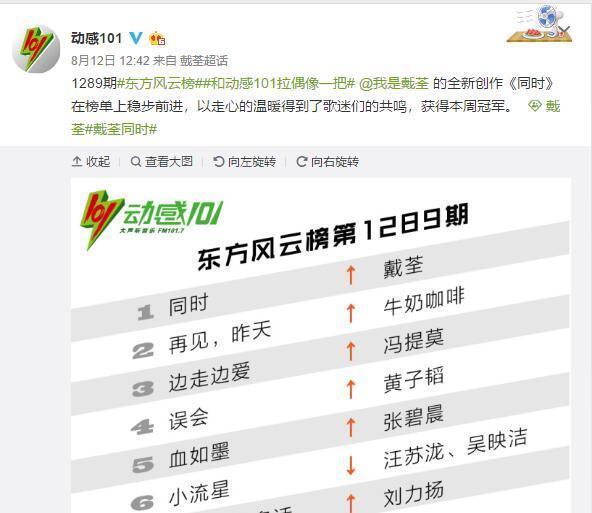 喜欢听音乐的网友相信都知道动感101这个电台,特别是在上海基本没有人说不认识,对动感101稍微有点了解都清楚,他们是个电台,是专门播放明星的歌曲,在他们那边会有各种各样的歌曲榜单,这些榜单都是具有很大的权威性的,毕竟这个电台在音乐届影响力也是蛮大的,而且网友也很喜欢看动感101的榜单,而在最近有个榜单里面的季军名字对于娱乐界的网友是很陌生,但对于电竞主播界却是熟悉的很,基本没人不认识的,她就是冯提莫。