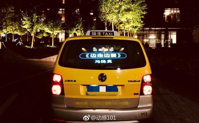 除了在上海高楼之外,在上海的的士也有这种表示,比如这部黄色的士,后面也写着边走边爱冯提莫这7个字,看来这次冯提莫在强行进入每个路人的眼里了。