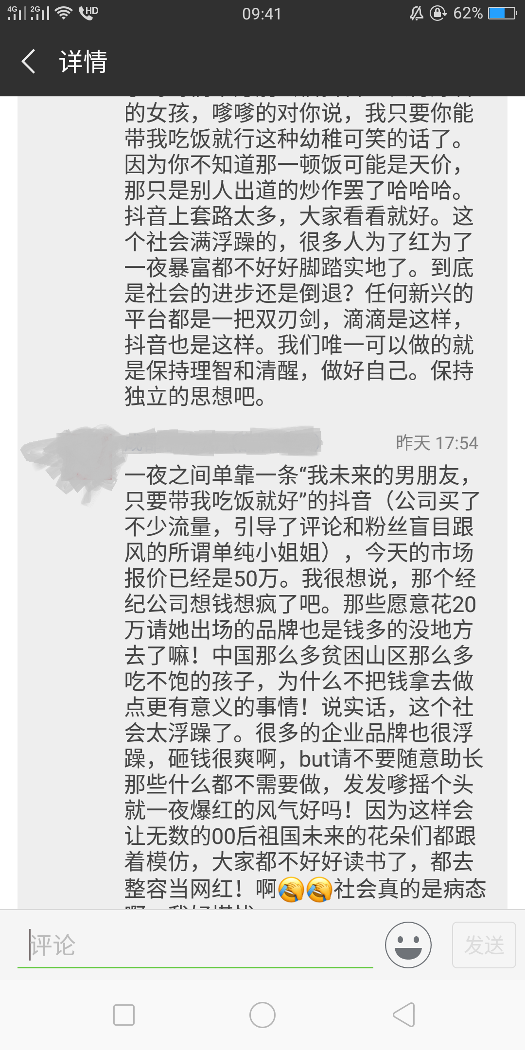 另据业内人士(成都知名品牌推广人)朋友圈消息,其经纪人给出的市场报价也从之前的20万疯涨到了50万,至于有没有成交,不得而知。