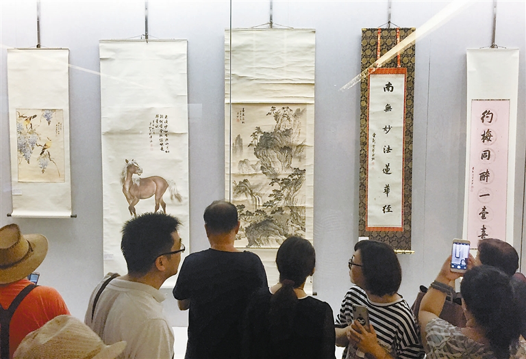 在天津美术馆举行的溥佐百年诞辰书画展自开幕以来,每天参观者众多。昨天,参展艺术家亲临现场挥毫,与书画爱好者交流。