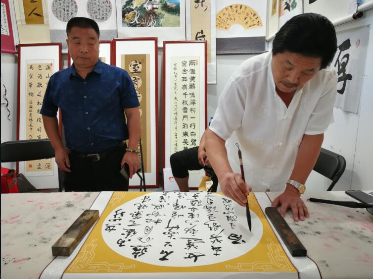 来自加拿大的参展商Alain Dery对记者表示,他们夫妻对中国传统文化非常感兴趣,尤其是中国书法,特别钟爱行草,在展会上看到孟老师的行草后觉得字体雄浑苍茫,遒劲有力,便提出想要收藏一幅,孟老师当即挥笔写下明代文学家杨慎《临江仙·滚滚长江东逝水》,夫妇二人表示得此作品是这次展会最大的收获,该词的荡气回肠与书法作品的大气磅礴相得益彰,他们回国后将好好珍藏。