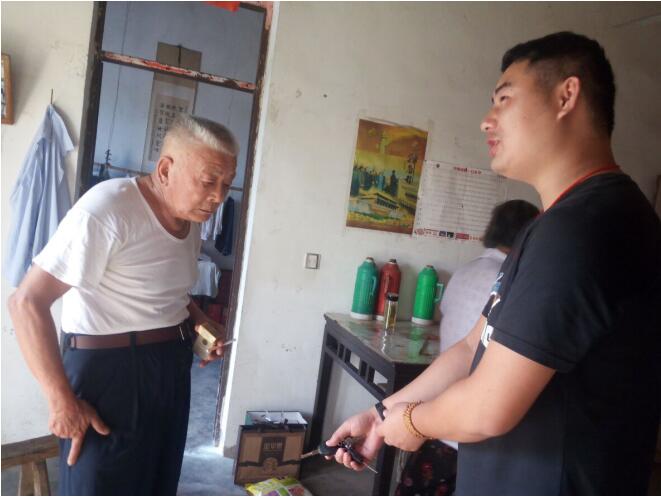 胡老今年90高龄,身体多病,家里条件不好,志愿者关切地询问他的身体和生活情况,了解他家里特别困难,志愿者叮嘱他保重身体,保持乐观的心态。为他送去牛奶,大米,月饼等慰问品及节日的祝福,志愿者一一鼓励他要坚定信心、鼓起勇气、战胜困难,并嘱咐他要及时将困难告诉志愿者,爱心天使协会对他帮扶,帮助他走出生活的困境。