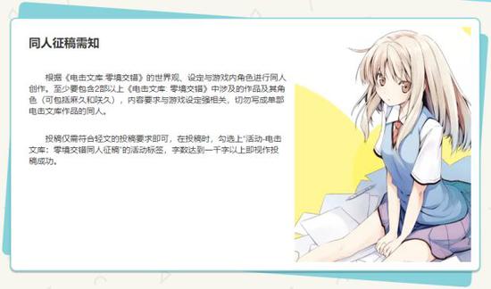 这次征文作者会根据《电击文库:零境交错》的世界观、设定与游戏内角色进行同人创作,在名为“零境世界”的时空中,这里不同世界的人汇集在一起,他们世界的街道彼此相连,产生了新的邂逅与冒险。