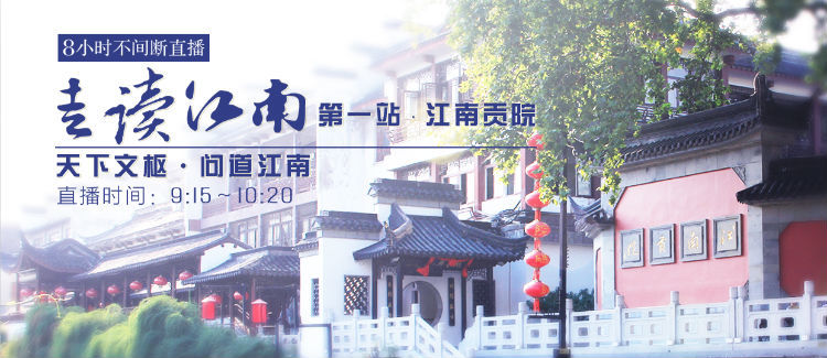 9月28日上午9:15,“书香江苏·8小时不间断直播——‘走读江南’中华经典传诵活动”的第一站活动“天下文枢·问道江南”将在南京江南贡院举行,在吟诵传唱江南经典名篇中,“走读江南,问道江南”。