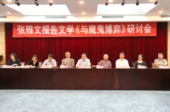 为纪念中国人民抗日战争暨世界反法西斯战争胜利70周年,黑龙江作家张雅文的长篇报告文学新作《与魔鬼博弈:留给未来的思考》日前由重庆出版社推出,受到广泛关注。9月15日,中国作协报告文学委员会、中共重庆市委宣传部、中共黑龙江省委宣传部、文艺报社在京共同为该书举办研讨会。中国作协书记处书记阎晶明,中日友好21世纪委员会中方副秘书长王泰平,中国图书评论学会名誉会长高明光,中共重庆市委宣传部副部长张永才,中共黑龙江省委宣传部副部长赵德信,《文艺报》副总编辑崔艾真,重庆出版集团总编辑陈兴芜、董事长吴茂见及20余位作家、评论家与会研讨。研讨会由中国作协创作研究部主任何向阳主持。
