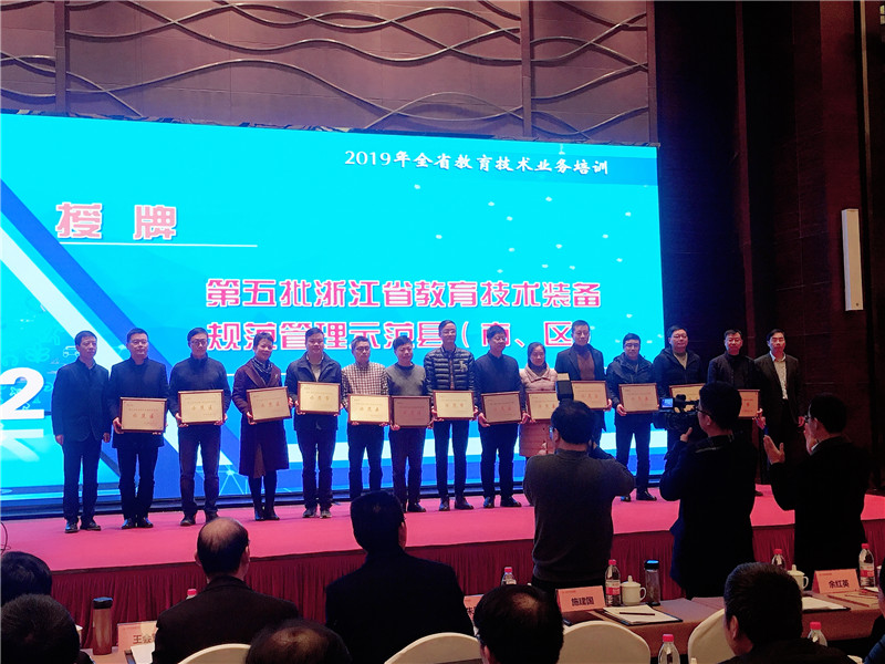 2019年2月27日至28日,浙江省教育技术中心组织召开全省教育技术业务培训会,总结交流2018年度亮点工作,研究部署2019年度重点工作。会议公布了第五批浙江省教育技术装备规范管理示范县(市、区)名单,我市南湖区和平湖市受表彰,嘉兴通过持续四年努力实现教育技术装备规范管理示范县“满堂红”。会上,嘉兴市教育局党委副书记刘玉成代表市教育局以《全面深化之江汇教育广场建设应用,全力书写教育信息化“奋进之笔”》为题,就嘉兴深化之江汇教育广场建设和应用,推动教育数字化转型初步成效作交流发言。