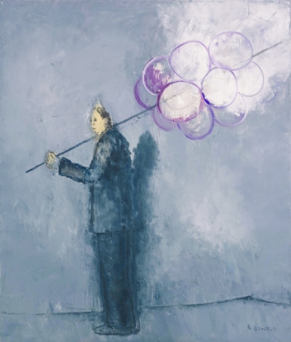 少有什么比这样的一些画面更远离我们在生活中所感受到的。黄立言的绘画弥漫着悲伤、荒谬、虚无、孤独、暧昧、神经质和难以捉摸的隐痛,细看又有某些混乱和悲剧感潜伏在里头,它们是画家内心涌动的潮汐,也是命运疏离的暗示。我知道,黄立言是一位徘徊在现实和幻想之间的画家,也是一位可以把内心的悲伤和天上的星星链接在一起的画家,他绘画透露出来的自我气息是另一个存在的他者,如此“不由自主”的表达所带来的个人性正是世相人生的一个面影。