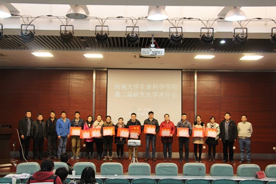 2015年12月26日,生命科学学院“第二届研究生学术论坛”年会在生命科学学院圆形报告厅召开。学院全体在读研究生和全体专业教师参加了本次论坛年会。大会开幕式由河南大学生命科学学院院长万师强主持。