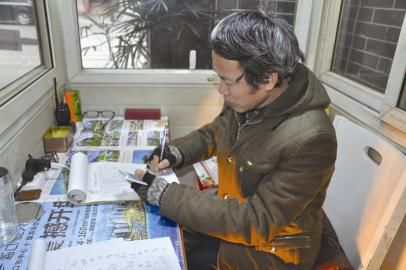 何玉平在岗亭里写诗