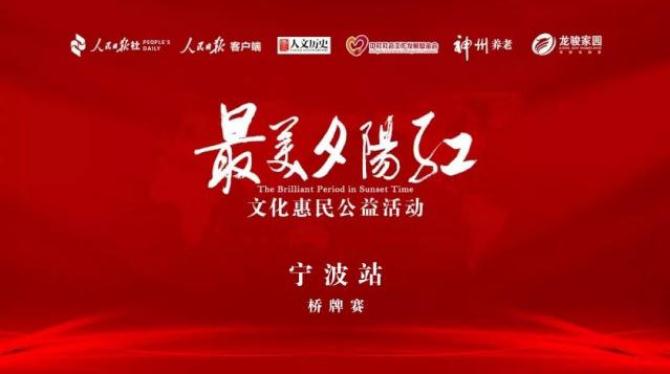 2019年6月15日——16日,由人民日报社指导,人民日报客户端旅游频道、《国家人文历史》杂志社主办,中社社会工作发展基金会支持,中社社会养老产业发展基金、龙骏集团承办,《神州·养老》杂志、最美夕阳红文化传播有限公司协办的最美夕阳红·文化惠民公益活动宁波站文体类桥牌赛在宁波市老年体育活动中心隆重举行!