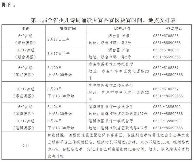 日前,山东图书馆对外发布,由山东省图书馆、山东省图书馆学会主办,淄博市图书馆、烟台图书馆、枣庄市图书馆承办,全省各市图书馆协办的第二届全省少儿诗词诵读大赛开始报名。