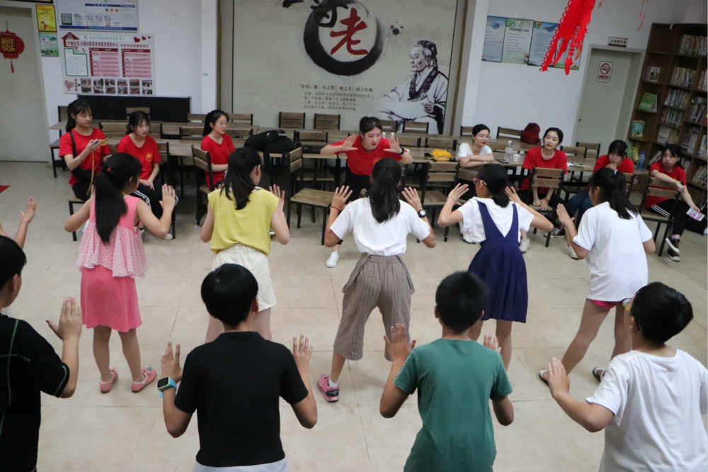 下午,舞蹈课上,志愿者先带领孩子们进行了简单的热身运动,向孩子们传授了舞蹈的动作要领。“1234,2234……”在志愿者的带领下,孩子们跟着音乐的节拍,伴随着轻盈的脚步翩翩起舞,尽显孩童的活泼可爱。虽然孩子们一开始对舞蹈不熟悉,动作总是不协调,有的忘记动作,有的跟不上节拍,但在志愿者的耐心教导下,孩子们不断地练习,在一次次的失误中不停吸取经验,终于渐入佳境。不知不觉中,舞蹈课渐渐接近尾声。