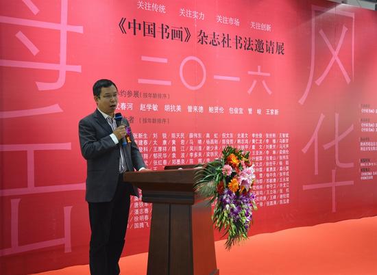 张世刚先生代表参展书家讲话时谈到,“《中国书画》是一本有‘贵族’气质的高大上的杂志,在行业内的影响力带动了他们在书画活动方面的成果,而且具有相当高的水准。他们的努力,也给书法界带来一股活力,带动书法家更积极地研究创作,更积极地参与交流活动。”