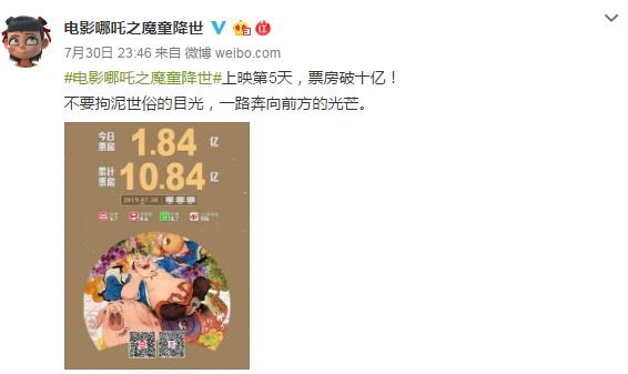 要说这个暑期档最火的电影,那必须是国产动画片《哪吒之魔童降世》。上映第五天,票房就破10亿,超过了《西游记之大圣归来》,成为国产动画电影内地票房新冠军。目前,这个纪录还在不断更新!