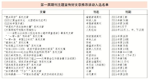 第一届期刊主题宣传好文章推荐活动结果日前揭晓,《人民论坛》等17家期刊的文章入选。