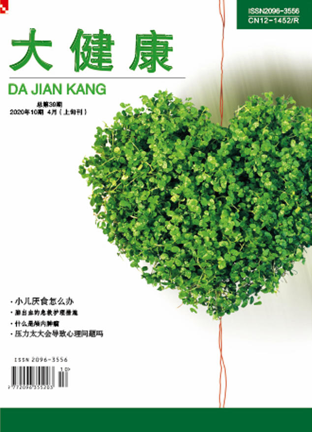 《大健康》杂志是天津出版传媒集团有限公司主管,天津科学技术出版社有限公司、天津市新华书店主办的健康科学类期刊。国际刊号:2096-3556,国内刊号:12-1452/R。大16开本,半月刊,本刊是中国万方数据库收录期刊。