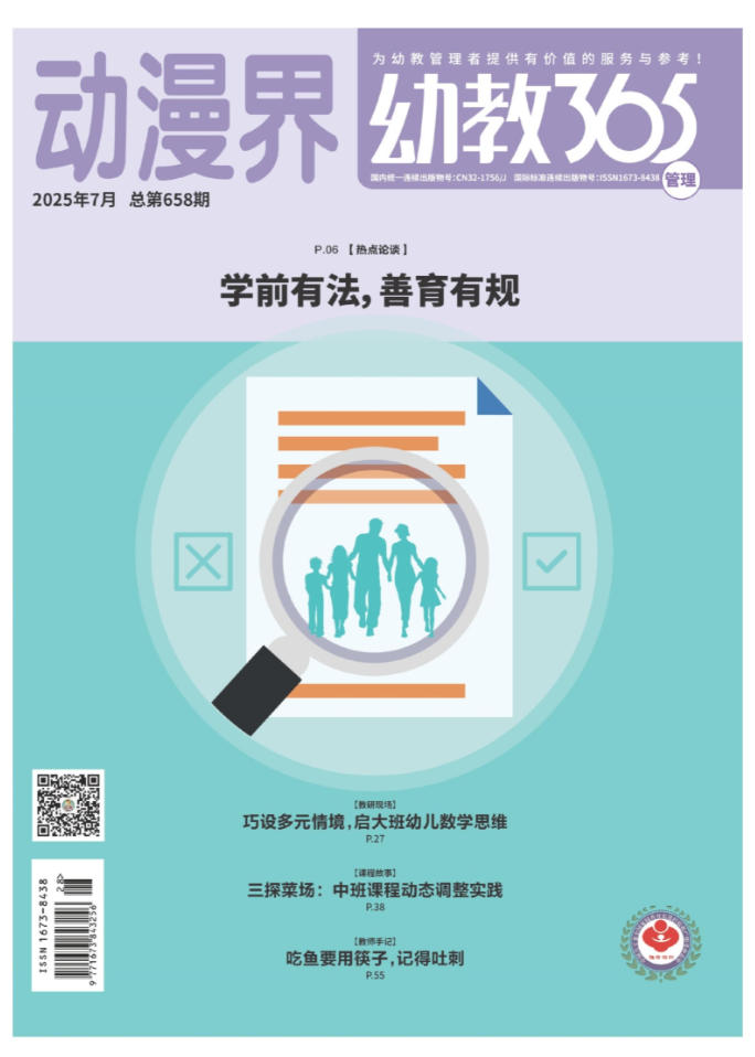 《动漫界·幼教365》杂志是由新华报业传媒集团主管主办、与今日教育集团联合主办的教育类周刊,由《动漫界·幼教365》杂志社编辑部编辑出版。国内刊号CN 32-1756/J,国际刊号ISSN 1673-8438,每月发行四期,万方收录。