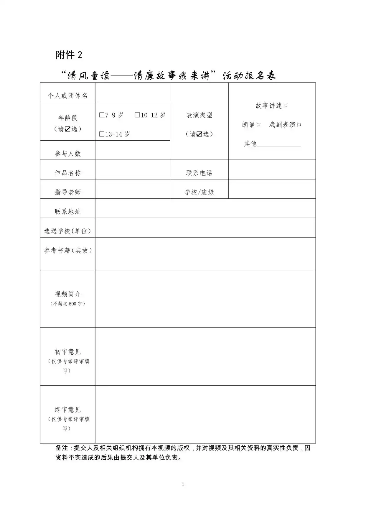 “清风童读——清廉故事我来讲”活动报名表
