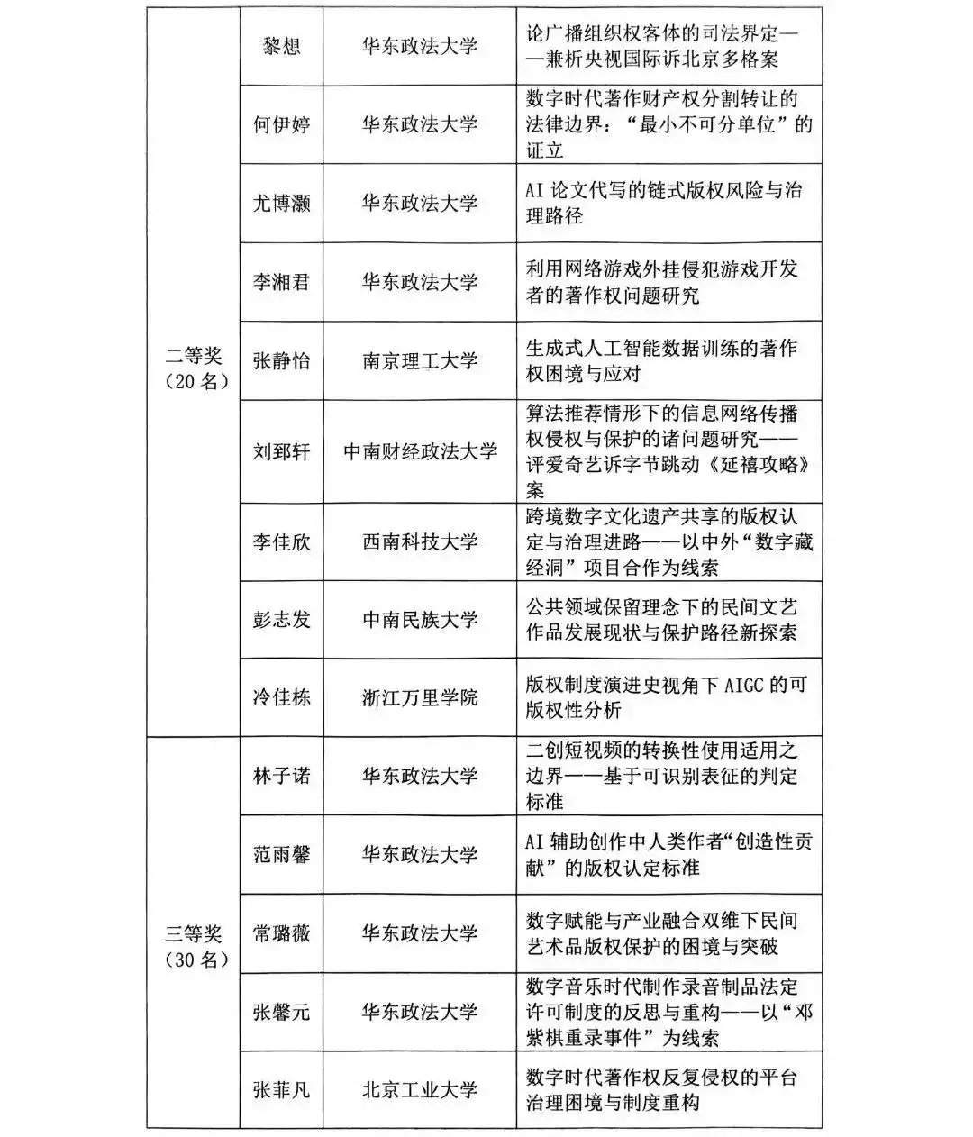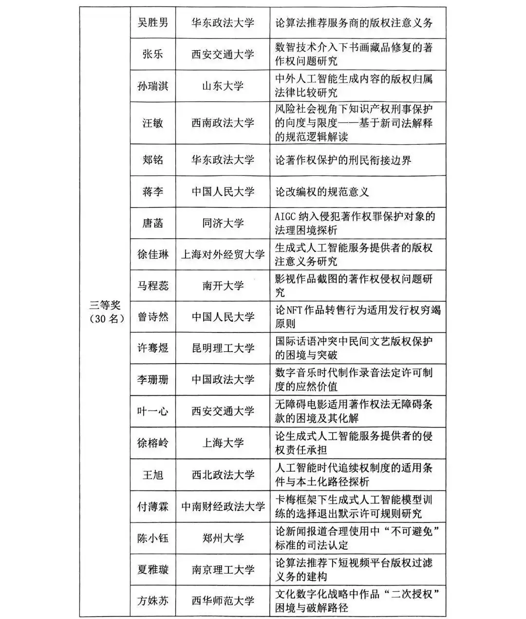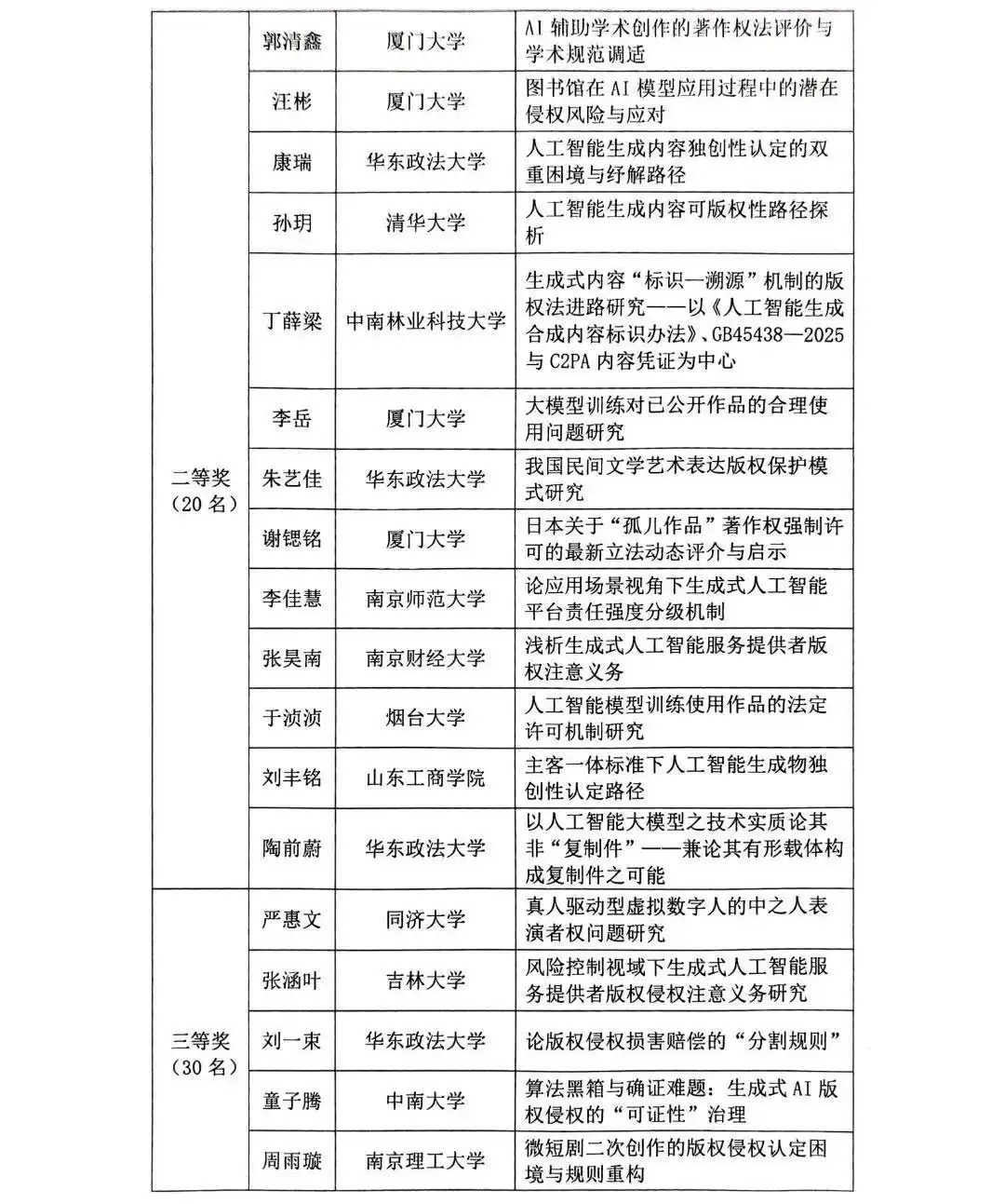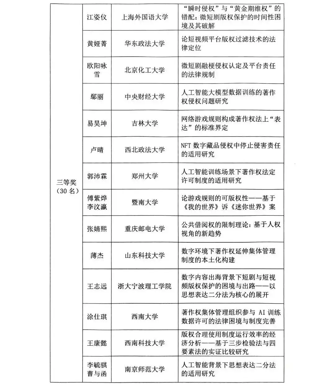 2025年全国大学生版权征文获奖公示名单
